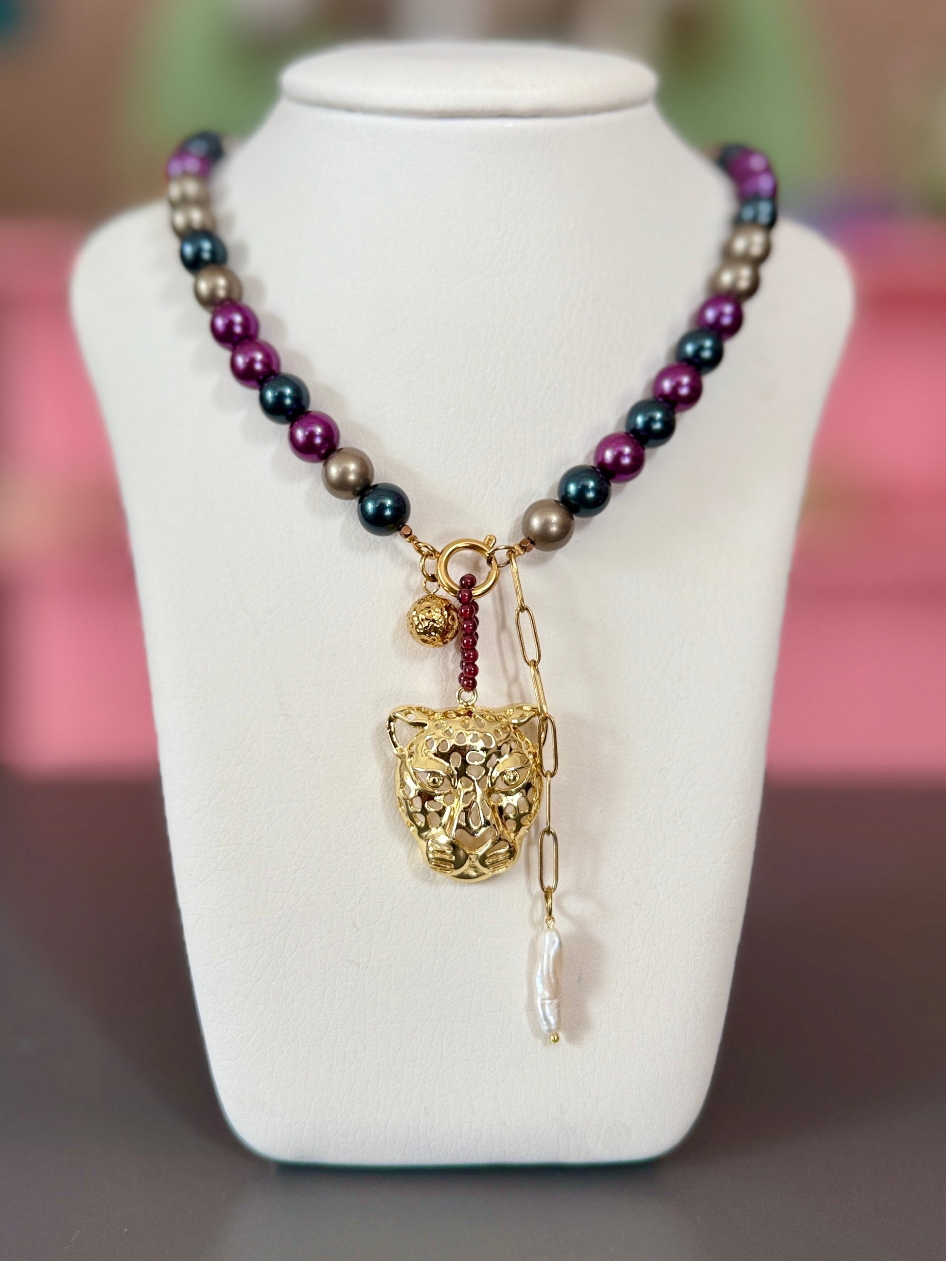 Elegant Freshwater Pearl Necklace with Ornate Gold Pendant